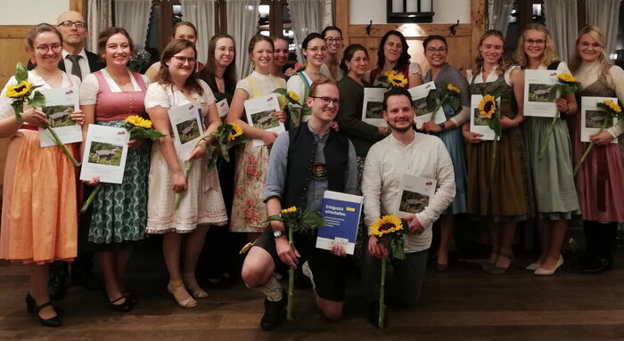 In einem festlichen Rahmen wurden kürzlich die diesjährigen Absolventen der Fachakademie für Ernährungs- und Versorgungsmanagement verabschiedet. Die Studierenden erhielten ihre wohlverdienten Abschlusszeugnisse und dürfen sich nun stolz "Staatlich geprüfte Betriebswirtin" bzw. "Staatlich geprüfter Betriebswirt für Ernährungs- und Versorgungsmanagement" nennen. Die zweijährige Vollzeit-Weiterbildung, gefolgt von einem einjährigen Berufspraktikum, hat die Absolventen optimal auf ihre zukünftigen Aufgaben vorbereitet. Sie sind nun qualifiziert, Führungspositionen in verschiedenen Bereichen wie Großküchen, Gebäudemanagement oder Veranstaltungsplanung zu übernehmen.