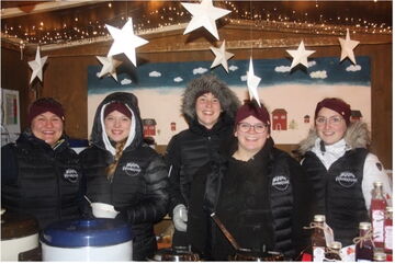 Jahrhundertschnee und Blaubeerglühwein. Das gab es zu sehen, als die Projektgruppe der Fachakademie am Samstag, den 02.12.2023 ihren Stand auf dem Tausend-Lichter-Glanz in Miesbach eröffnete. Den Gästen wurde eine vegetarische Perlgraupensuppe und Köttbullar angeboten. Zu Trinken gab es selbstgemachten Blaubeerglühwein und Kinderpunsch – hergestellt mit den hauseigenen Sirupen der Schülerfirma „Spritzig“.