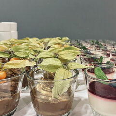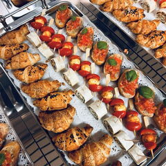 Wir, die FakEV1, übernahmen die Vorbereitungen und die Durchführung der Veranstaltung. Gemeinsam mit den engagierten Studierenden der FakEV2 kümmerten wir uns auch um die Kulinarik. Es begann mit einer Auswahl an Häppchen: Bruschetta, Wrap-Schnecken - gefüllt mit Rucola, karamellisierten Walnüssen und Frischkäse – und Lachs-Lauch-Hörnchen sowie Tomaten-Mozzarella-Spieße. Dazu wurden erfrischende alkoholfreie Cocktails serviert – ein Mojito und ein Rainbow-Cocktail mit Fruchtspieß.