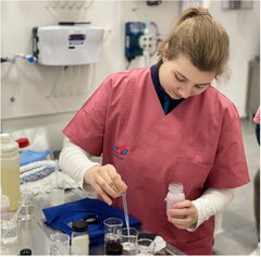 Vor Ort nahmen wir an Workshops in den Bereichen Sanitärreinigung, Hände-und Flächendesinfektion sowie Textilhygiene teil. Zudem wurden wir in das Ent- und Beschichten von elastischen Hartbodenbelägen eingewiesen. Auch auf die betriebsspezifische Anwendung der hauseigenen Produkte wurde genauer eingegangen.