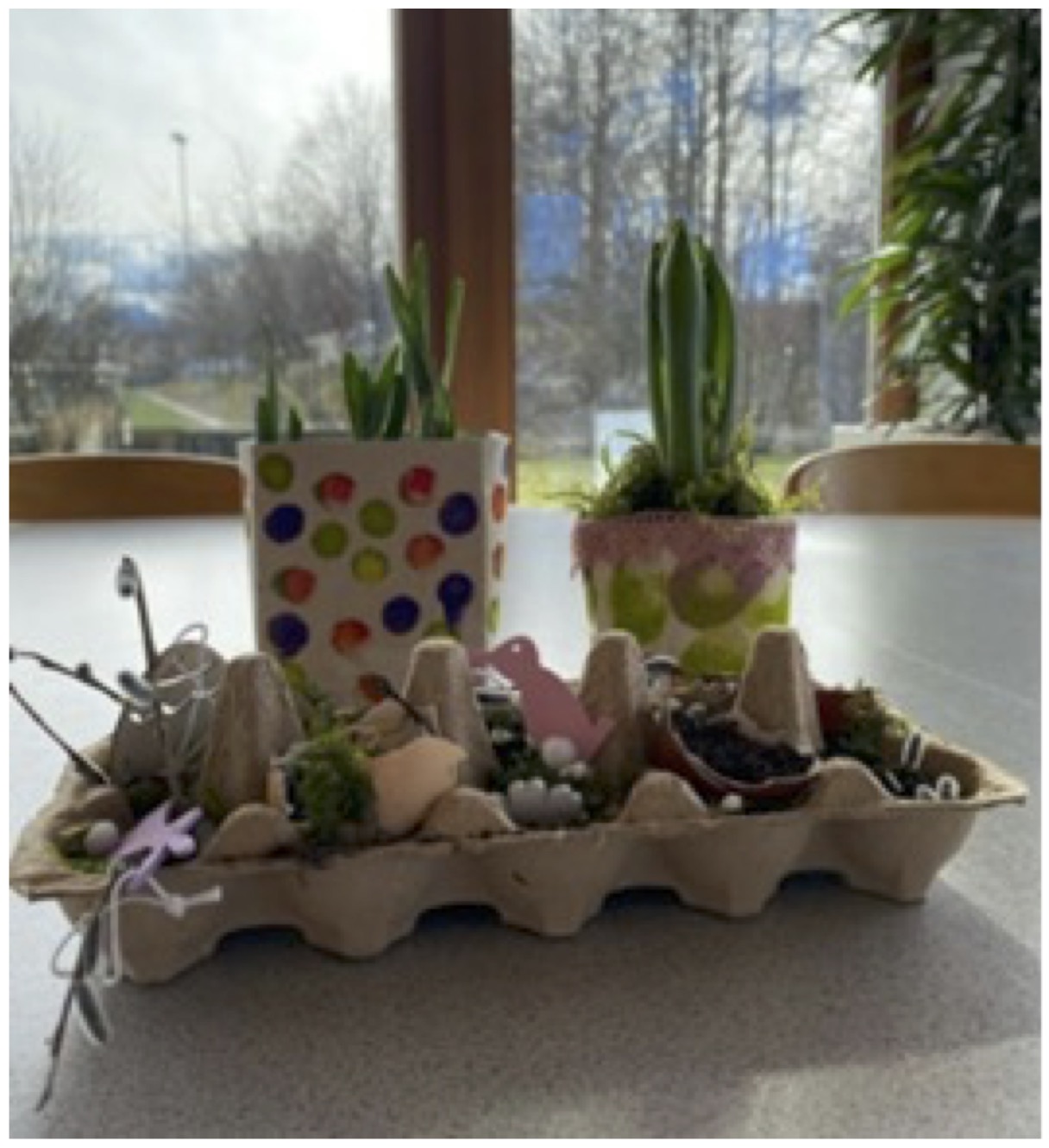 | Am 7. März 2024 besuchte die Fachakademie im Rahmen eines Projektes die Oberlandwerkstätten in Miesbach. Gemeinsam mit Angestellten wurden kreative Tischdekoration passend zum Frühling aus recyceltem Material hergestellt. Aus Tetra Pak, Eierkartons, Eierschalen, Moos und Frühblüher wurden einzigartige Dekorationen. Diese Initiative zeigt nicht nur die Bedeutung von Nachhaltigkeit und Recycling, sondern fördert auch die Kreativität und Zusammenarbeit zwischen Bildungseinrichtungen und lokalen Unternehmen. |