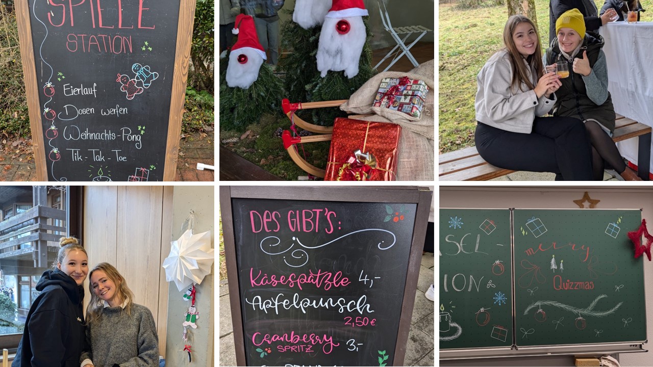 Geboten wurden zahlreiche Spiele und Aktivitäten, wie z. B. Dosenwerfen, verschiedene weihnachtliche Rätsel und eine Bastelstation, bei der Weihnachtskarten und Baumanhänger gestaltet werden konnten. Auch für das leibliche Wohl war bestens gesorgt: Es gab Waffeln, Käsespätzle und wärmende Getränke. Alle Schülerinnen und Schüler sowie Lehrkräfte genossen die Köstlichkeiten und in weihnachtlicher Atmosphäre. Eine Feuerschale im Außenbereich sorgte zudem für angenehme Wärme.